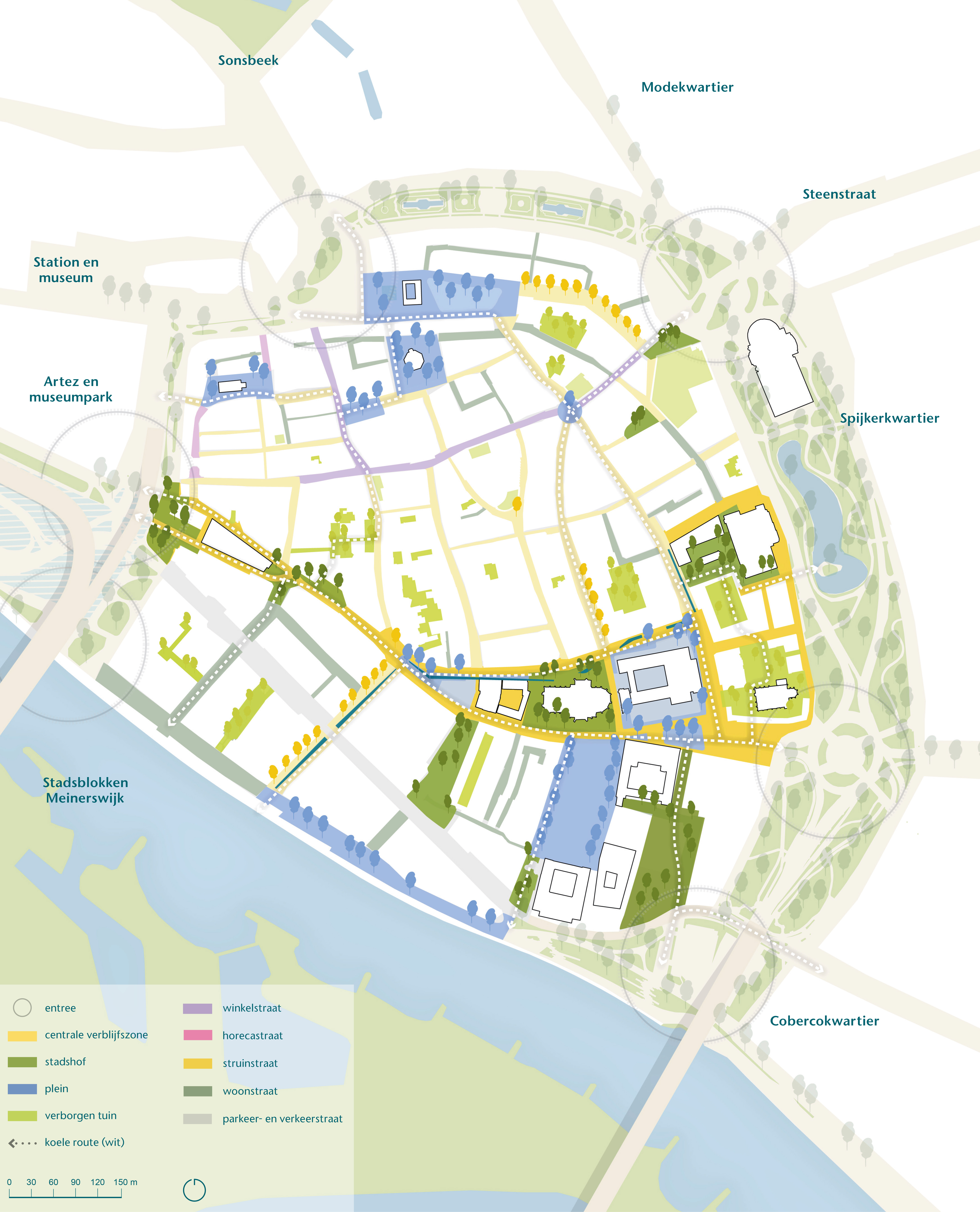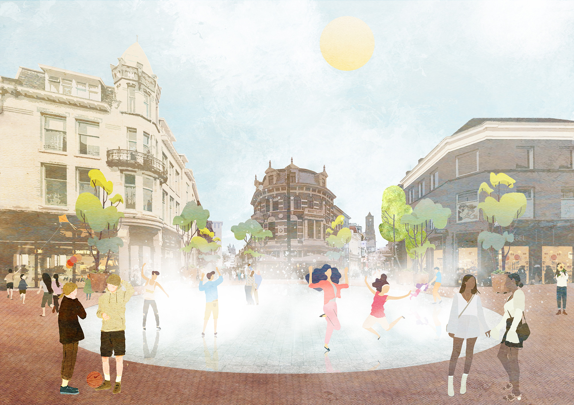 De belangrijkste plekken in de openbare ruimte van de binnenstad zijn nu allemaal versteend. Het zijn allemaal pleinen. Ze zien er vaak hetzelfde uit en vertellen niet veel over de identiteit van de plek. Dat willen we in de toekomst aanpakken. Naast de pleinen worden er 2 nieuwe groene type plekken toegevoegd. De stadshoven en de verborgen tuinen. Hieronder kan je lezen wat het verschil is tussen de type plekken en hoe deze er in de toekomst zullen uitzien. Bij het verkoelen en vergroenen van de plek kijken we naar hoe deze gebruikt wordt.