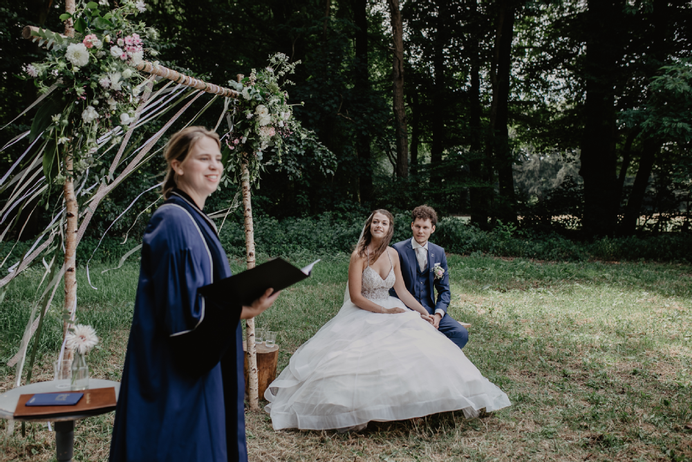 “Dankzij Charlotte hebben wij een prachtige, persoonlijke trouwceremonie gehad. Zo hadden wij het nog nooit eerder meegemaakt. Charlotte heeft humor, is oprecht geïnteresseerd en werkt met precisie. Alles wat een trouwambtenaar in onze ogen nodig heeft. Ze weet de juiste vragen te stellen om een mooi, samenhangend verhaal te vertellen en kan inspelen op onverwachte situaties. Tijdens de ceremonie is er gehuild, gelachen en (heel mooi) gezongen. We hadden niemand anders als trouwambtenaar willen hebben. Lieve Charlotte, heel erg bedankt voor alles.”